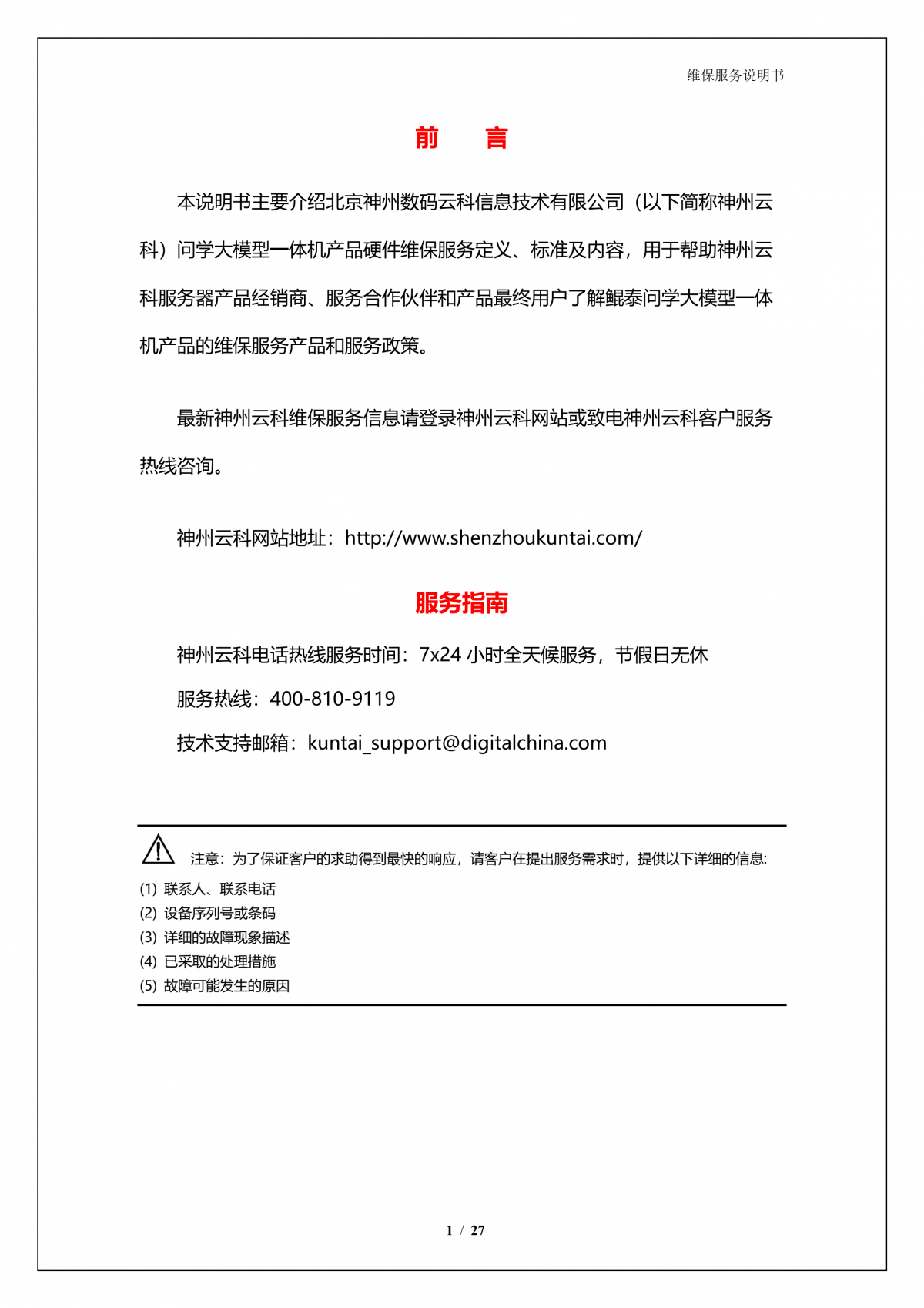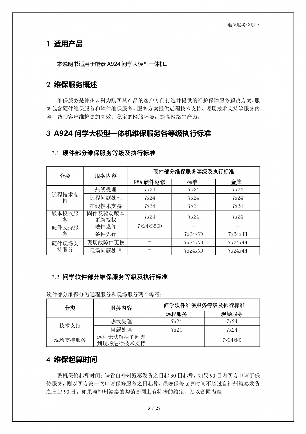 豪门国际A924 DS大模型一体机硬件维保服务说明书_V1.1