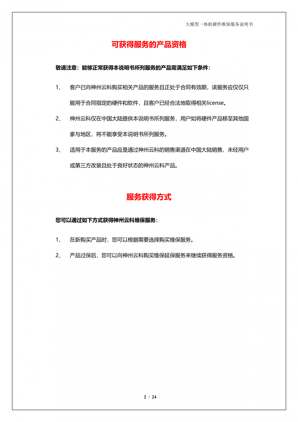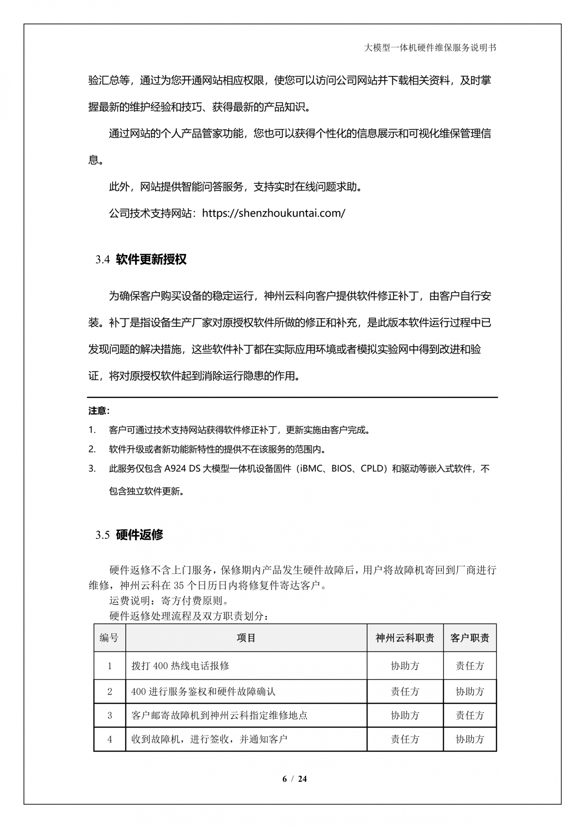 豪门国际A924 DS大模型一体机硬件维保服务说明书_V1.1